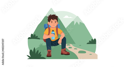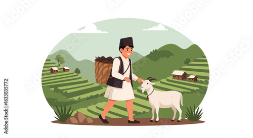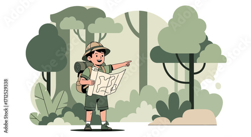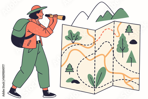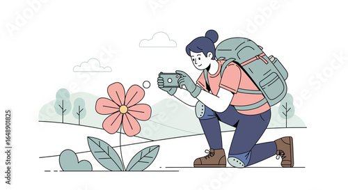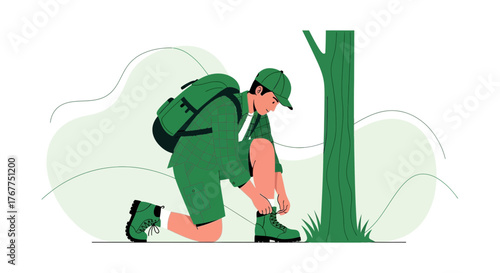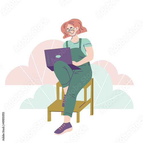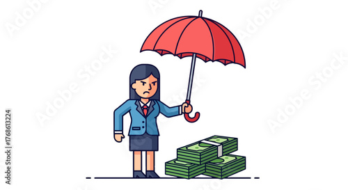 Осенний сезон. Девушка под зонтиком, идущая под дождем, плоская векторная иллюстрация. Молодая женщина в пальто и резиновых сапогах идет по улице. Осенний пейзаж. Дождливая осенняя погода.