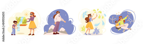 Огромные сладкие, сочные половинки инжира и микро-мужские и женские персонажи с апельсином и яблоком, векторная иллюстрация. Осеннее сезонное здоровое питание, концепция фестиваля урожая для веб-баннера на странице веб-сайта