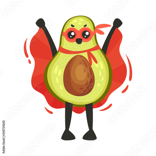 Векторный значок персонажа супергероя авокадо, изолированный на белом фоне.