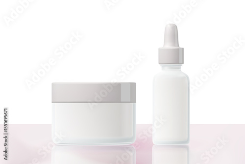 Набор макетов принадлежностей для ухода за ребенком. Векторная реалистичная иллюстрация белых полотенец, пустышки, бутылочки для молока новорожденного с силиконовой соской, изолированной на прозрачном фоне.