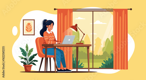 Молодая женщина, садовник поливает растения на балконе, плоская векторная иллюстрация. Девушка выращивает комнатные растения, фрукты и овощи в горшках. Озеленение балкона. Городское сельское хозяйство.