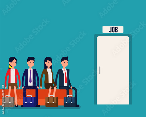 Векторная иллюстрация женщины-кассира банка и мужчин-клиентов, стоящих рядом с кассой или кассовым отделением. Элемент дизайна концепции банковских услуг в плоском стиле.