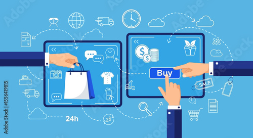 Смартфон с приложением мобильного банкинга на экране, клиент банка, совершающий денежные транзакции онлайн, векторная иллюстрация дизайна в плоском стиле. Онлайн-перевод денег, мобильный платеж.