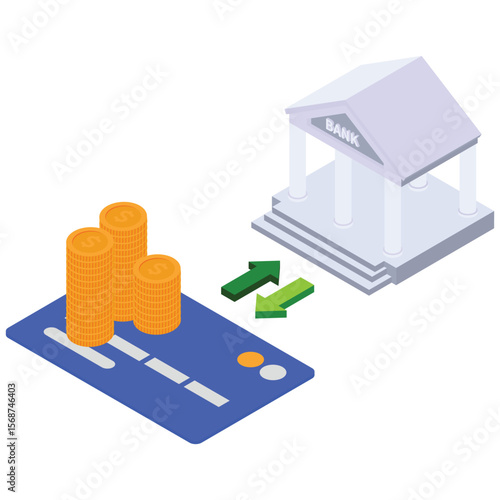 3d-векторная иконка изометрического здания банка. Финансовая структура, выделенная на белом фоне. Банковская услуга, символ мобильного приложения