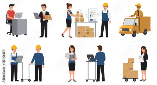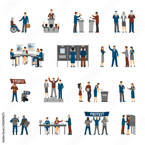 Набор векторных значков банковских сотрудников с банковским кассиром, менеджерами, представителями службы поддержки клиентов, вооруженными инкассаторами, охранником, клиентами, ожидающими очереди в кассу и банкомат. Элементы дизайна в плоском стиле.