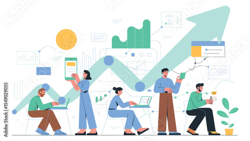 Банк заглавными буквами, клиент-мужчина, дающий долларовую банкноту женщине-кассиру банка, векторная иллюстрация дизайна в плоском стиле. Банковские услуги, концепция кассового ящика.