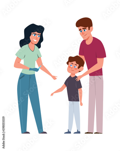 Банковский работник и клиент пожимают друг другу руки в векторе. Люди в офисе. Агент встречается с сотрудником