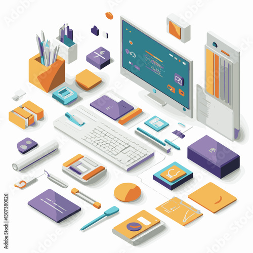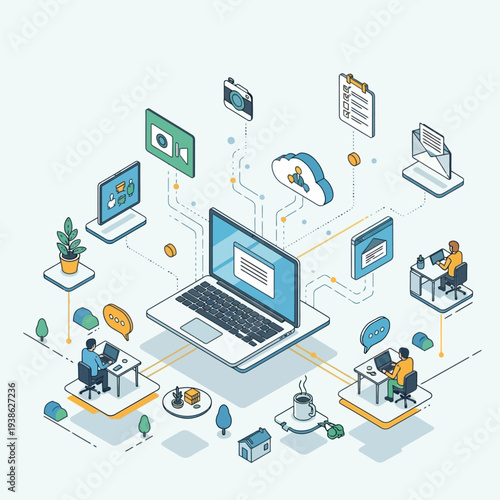 Векторная плоская изометрическая блок-схема банковских услуг с банковскими сотрудниками, клиентами, банковскими и финансовыми символами. Концепция банковского бизнеса.