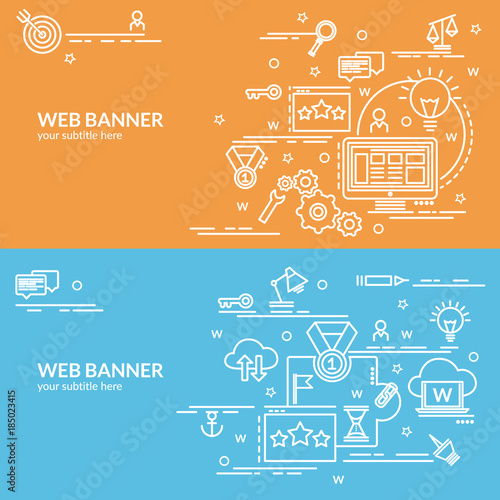 Векторный набор горизонтальных баннеров с банковскими, охранными и онлайн-платежными линиями, элементами дизайна в плоском стиле, веб-шаблонами.