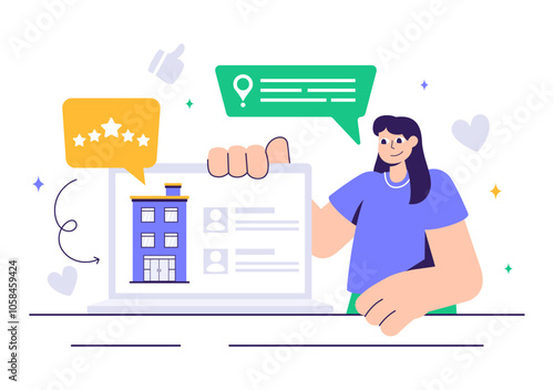 Концепция ранжирования парикмахера. Клиент дает положительный отзыв, ставит лайки и печатает сообщение с приятными отзывами. Экран мобильного телефона с приложением в векторной иллюстрации человеческой руки