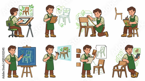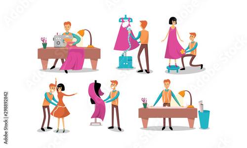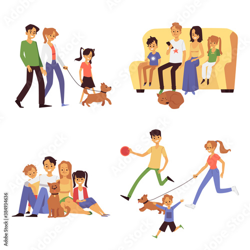 Векторная иллюстрация персонажей салона по уходу за домашними животными puffy barber, мебели, принадлежностей для ухода за собаками и оборудования, изолированных на белом фоне. Дизайн в плоском стиле.