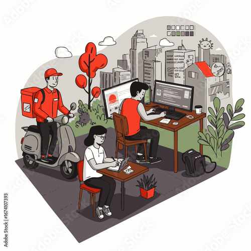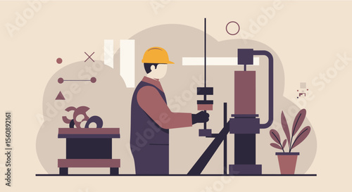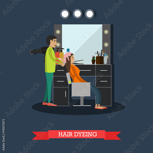 Интерьер парикмахерской. Профессиональный парикмахер бреет мужчине бороду и стрижет волосы машинкой для стрижки, плоская векторная иллюстрация. Мужчины бреются, ухаживают за бородой и стригутся. Услуги парикмахерского салона.