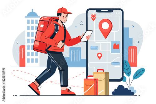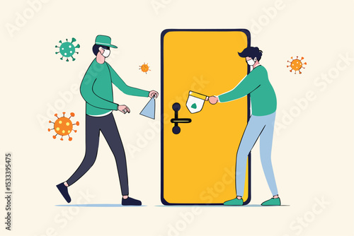 Огромное мужское лицо и микро-мужские персонажи с парикмахерскими инструментами для ухода за бородой, такими как бритва, лосьон после бритья, кисточка для бритья с пеной, ножницы, векторная иллюстрация. Концепция парикмахерской для страницы веб-сайта и т.д.