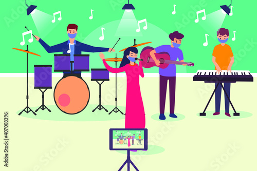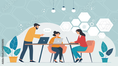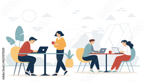 Векторная иллюстрация крошечных персонажей-парикмахеров, подстригающих большие усы и бороду с помощью станка для бритья волос, ножниц и расчески. Концепция парикмахерской для веб-баннера, страницы веб-сайта.