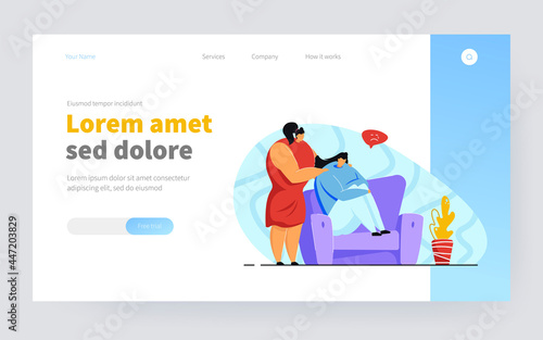 Векторный шаблон веб-сайта парикмахерской, дизайн веб-страницы и целевой страницы для разработки веб-сайтов и мобильных сайтов. Концепция услуг по стрижке, стрижке бороды и бритью.