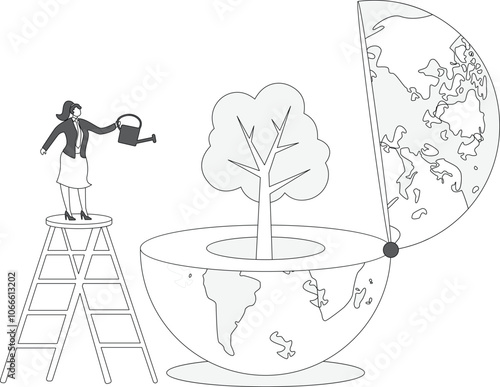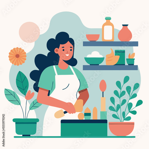 Крошечные персонажи мужского и женского пола-бариста, делающие гигантскую чашку зеленого чая матча, плоская векторная иллюстрация. Чайная комната, чайный домик. Полезный и органический травяной напиток, традиционная японская церемония.