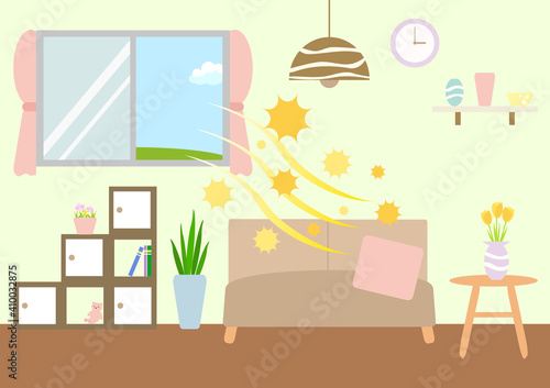Фон интерьера ванной комнаты современного дома или гостиничных апартаментов. Ванная комната с керамической мебелью, ванной, краном, раковиной и зеркалом векторная иллюстрация