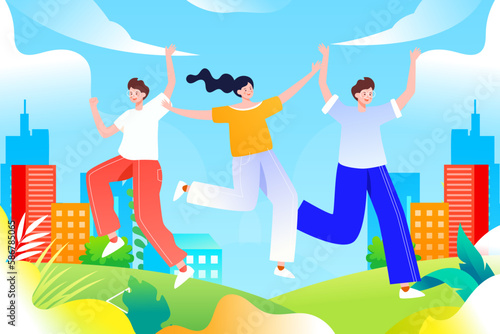 Вечеринка барбекю с друзьями, плоская векторная иллюстрация. Люди готовят мясо, сосиски на гриле, пьют пиво и веселятся. Пикник с барбекю на открытом воздухе, летний досуг.