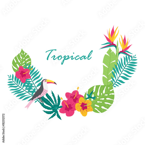 Красивая векторная иконка веточки тропических цветов, изолированная на белом фоне.