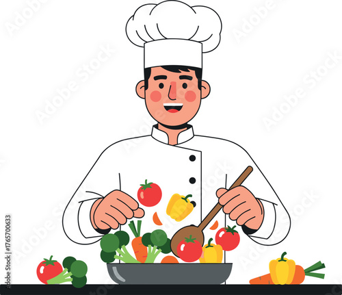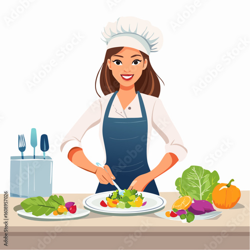 Красивая женщина готовит. Векторная иллюстрация в стиле ретро поп-арт. Женщина-повар в униформе. Концепция ресторана.