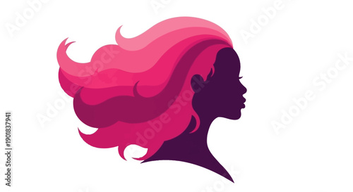 Красивая девушка с длинными волнистыми волосами. Векторная иллюстрация в современном стиле бумажного искусства. Логотип салона красоты и парикмахерской, шаблон дизайна визитной карточки.