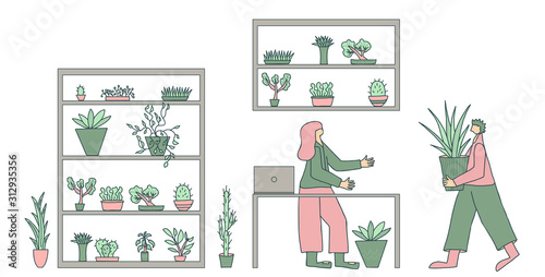 Векторные концептуальные баннеры салона красоты. Ателье стрижки, маникюра и макияжа. Женщины в студии красоты иллюстрации в плоском мультяшном стиле.