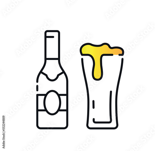 Пивная бутылка и кружка с пеной, векторная иллюстрация в современном стиле бумажного искусства. Креативная пивная композиция для пивоварни, пивного фестиваля, меню, плаката, баннера и т.д