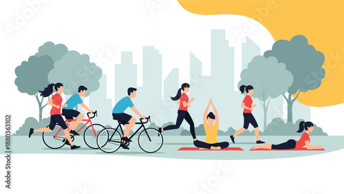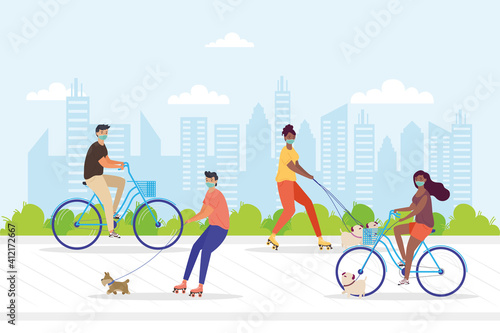 Велосипедная авария столкновение велосипедиста с автомобилем, векторная плоская иллюстрация. Фельдшер бригады скорой медицинской помощи спасает раненого пациента, транспортируя его в больницу на носилках. Дорожно-транспортное происшествие, велосипедная авария