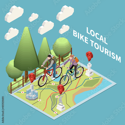 Велосипеды напрокат и кассовый аппарат для оплаты, плоская векторная изометрическая иллюстрация. Прокат велосипедов, парковка городского эко-транспорта, услуга обмена велосипедами.