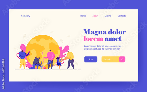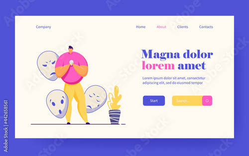 Векторный шаблон веб-сайта игры в бинго, дизайн веб-страницы и целевой страницы для разработки веб-сайтов и мобильных сайтов. Огромные шары со счастливыми номерами, лотерейный барабан и крошечные персонажи победителей лотереи.
