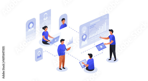 Вектор технологии видеонаблюдения с биометрическим распознаванием лиц. Инфографика аутентификации для контроля личной безопасности. Камеры видеонаблюдения обеспечивают видеонаблюдение