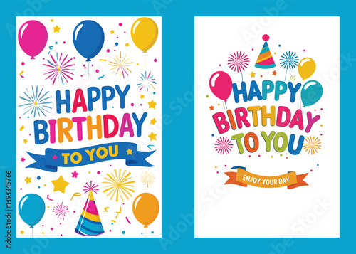 Шаблон поздравительного плаката для вечеринки по случаю дня рождения с креативной векторной иллюстрацией красочного дизайна. Фон для оформления воздушными шарами и надписями из мультфильмов. Приглашения и поздравления по случаю годовщины