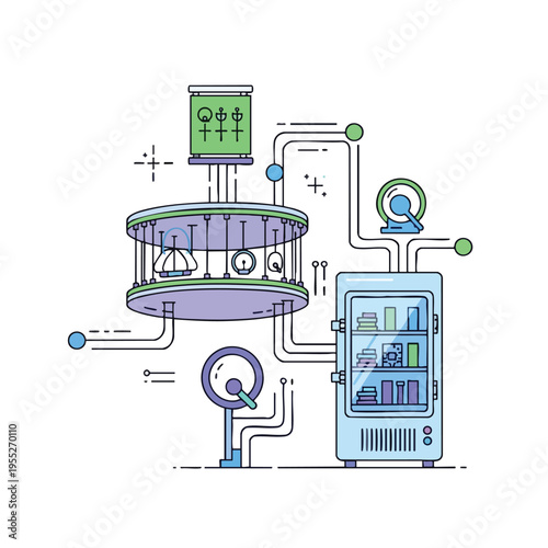 Векторная иллюстрация концепции биткойн-фабрики. Элемент дизайна в плоском стиле с тонкой линией для веб-баннеров и печатных материалов.