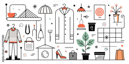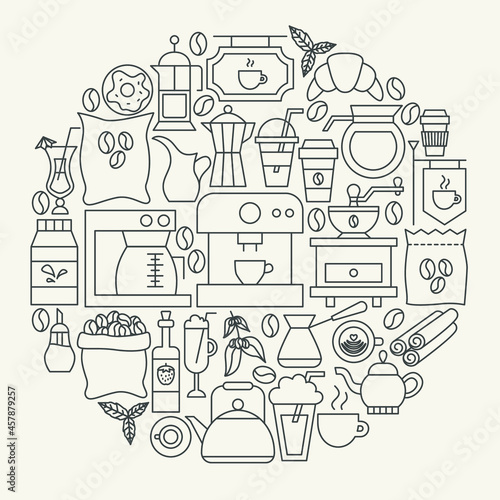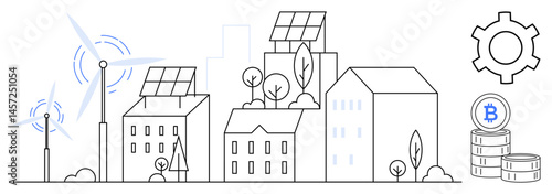 Векторная круглая иллюстрация майнинга биткоинов. Современный элемент дизайна в плоском стиле thin line art с символами, значками для майнинга цифровой валюты или криптовалюты.