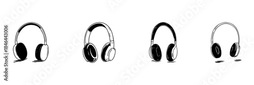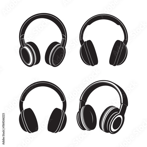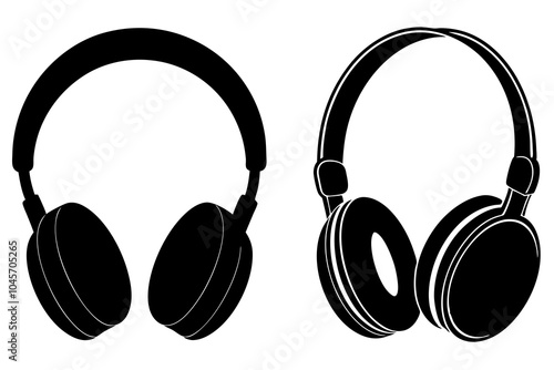 Черно-белые наушники-вкладыши. Векторная реалистичная иллюстрация, изолированная на прозрачном фоне.
