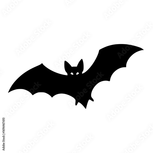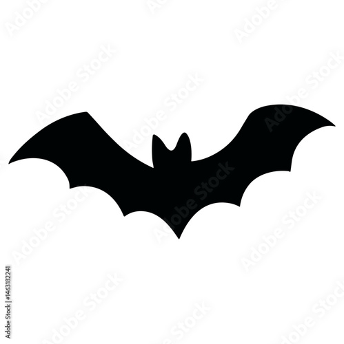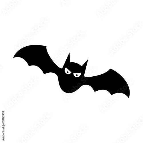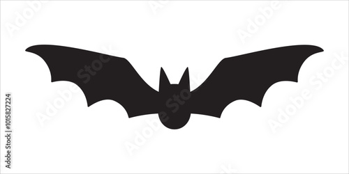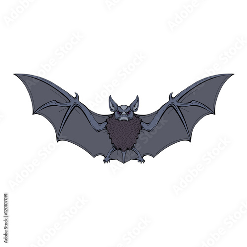Вектор полета черной летучей мыши. Жуткий персонаж черного животного существа, страшный ночной монстр, изолированный на белом фоне