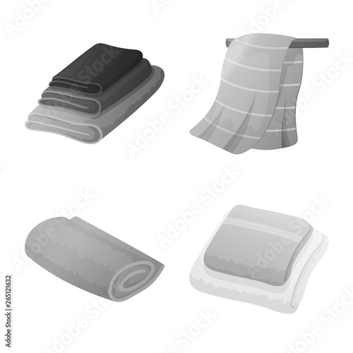Черный набор макетов постельного белья, векторная иллюстрация, изолированная на белом фоне. Реалистичные шаблоны кроватей, подушек, простыней, сложенных и развернутых одеял.