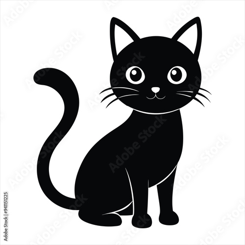 Вектор черной кошки. Иллюстрация значка домашнего животного с милым котенком-ведьмой из мультфильма на Хэллоуин, который ходит с закрытыми глазами, изолированный на белом фоне