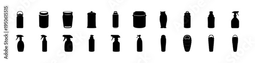 Черное ведерко для клея, силиконовый герметик, упаковочная трубка из полиуретановой монтажной пены с набором реалистичных макетов пистолета. Векторная иллюстрация, изолированная на белом фоне. Строительная химия.