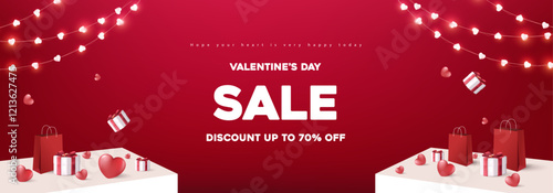 Коробка для распродажи по акции "Черная пятница" с сюрпризом. Черная подарочная коробка с красным бантом и лентой. 3d векторная концепция промо-скидки в черную пятницу.