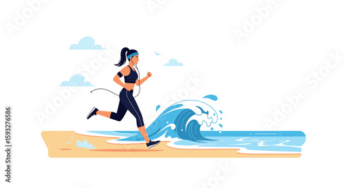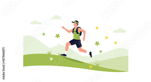 Векторная иллюстрация молодого человека-инвалида, бегущего на протезе. Паралимпийский спортсмен, бегущий на искусственных спортивных ногах. Элемент дизайна в плоском стиле "Бегущий по лезвию".