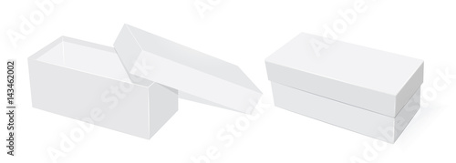 Пустая картонная раздвижная коробка, реалистичный макет изолированного набора на сером фоне. Векторная иллюстрация упаковки для розничной продажи или подарочного контейнера, подготовленного для брендирования