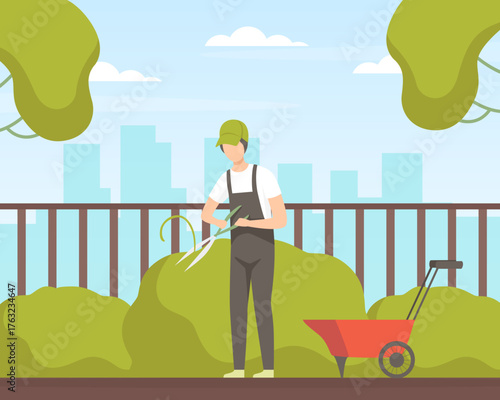 Слепая женщина, идущая по улице с тростью и собакой-поводырем, плоская векторная иллюстрация. Слабовидящая девушка в очках с собакой-ассистентом, служебным животным. Образ жизни человека с ограниченными возможностями.