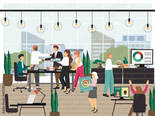 Встреча Совета директоров с белым человеком в качестве генерального директора, концепция векторной иллюстрации. Деловая встреча и презентация. Деловая согласованность и командная работа.