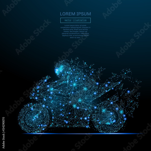 Векторный многоугольный арт-стиль культуриста, демонстрирующий свои мышцы. Низкополигональная каркасная сетка с рассеянными частицами и световыми эффектами на темно-синем фоне. Шаблон баннера спортивного плаката с местом для копирования.