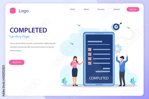 Забронируйте свой отель онлайн, шаблон веб-сайта целевой страницы. Векторная иллюстрация туриста с багажом, бронирующего номер в отеле с помощью смартфона. Концепция мобильного бронирования отелей.