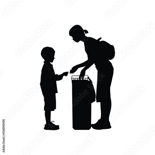 Офицер пограничной службы в военной форме и медицинской маске, показывающий запрещенный путь к векторному значку беженца, выделенному на белом фоне. Концепция вирусной пандемии.