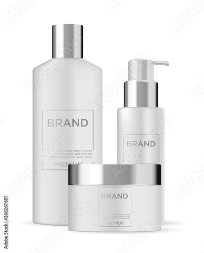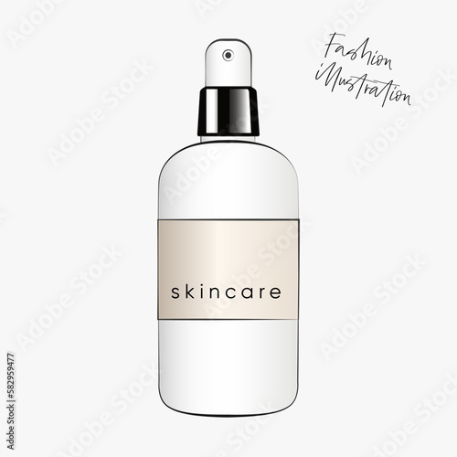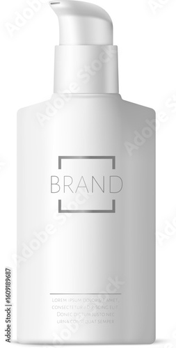 Макет флакона. Значок контейнера для косметического средства. 3d-шаблон пластиковой упаковки с аэрозольным распылителем на белом фоне.