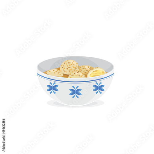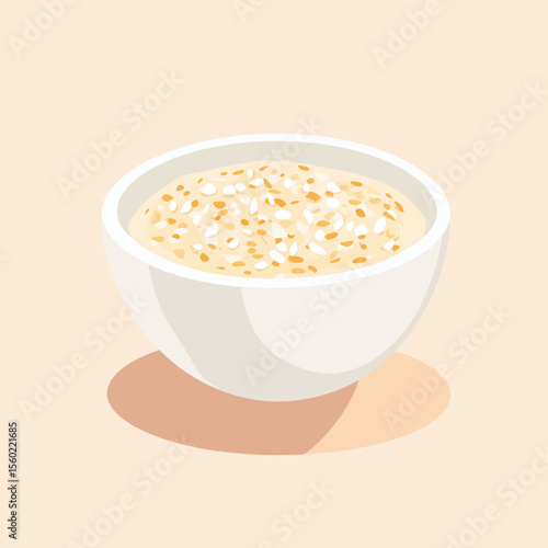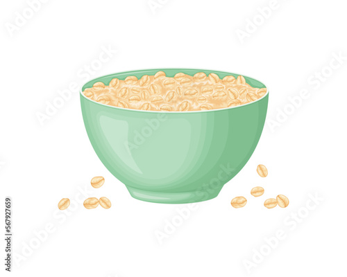 Две миски овсяных хлопьев и большая порция молока. Два этапа приготовления полезной овсянки. Векторная реалистичная иллюстрация, изолированная на прозрачном фоне.