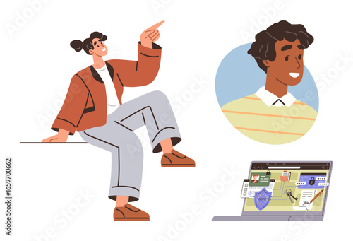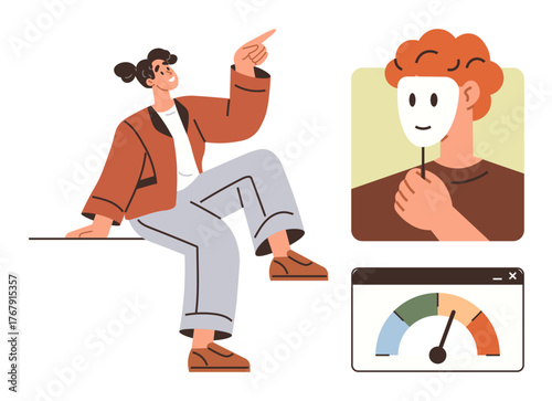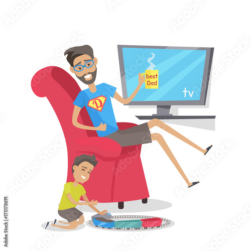 Мальчик-ребенок, играющий с газонной игрушкой верхом на векторной иконке-качалке, изолированной на белом фоне